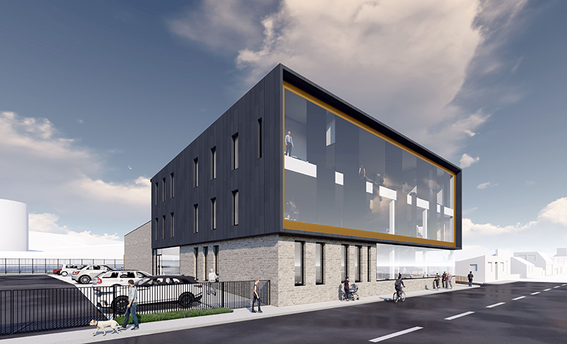 Stewart Mackay, project engineer for Will Rudd and the Moray West projects described the project elements. “The new build Operations & Maintenance facility has two main areas designed to monitor and maintain the offshore farm, comprising a three-storey structure with an internal floor area of approximately 550m2 per level and a warehouse to the rear giving 245m2 of storage space.