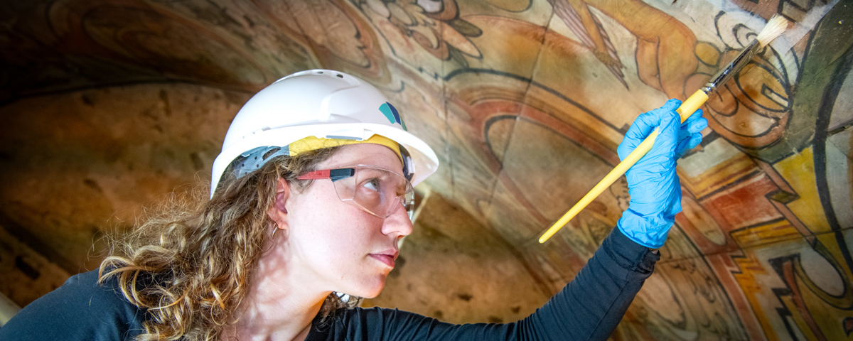 “Learning how to apply techniques on this kind of painted surface was a challenge, but the patience and skill of the experienced conservators I’ve worked with has helped me find my confidence and made me a better conservator. It’s been a privilege to carry out treatments on and work with such nationally historic objects and buildings during my year at HES.”