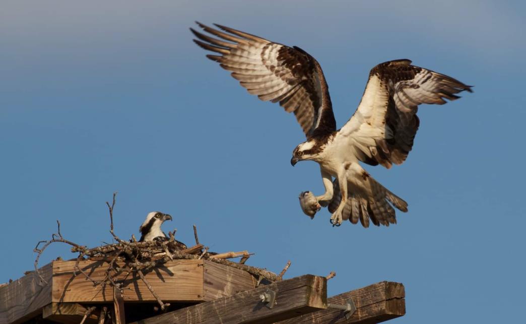 The nesting platform was originally constructed as an alternative home for the ospreys after the pair had nested on a 48 metre electricity transmission tower scheduled for essential maintenance. Installed ahead of the 2014 breeding season, the platform was designed to offer a safe and stable nesting environment – and to the team’s delight, Harry and Flora adopted it immediately, returning year after year ever since.
